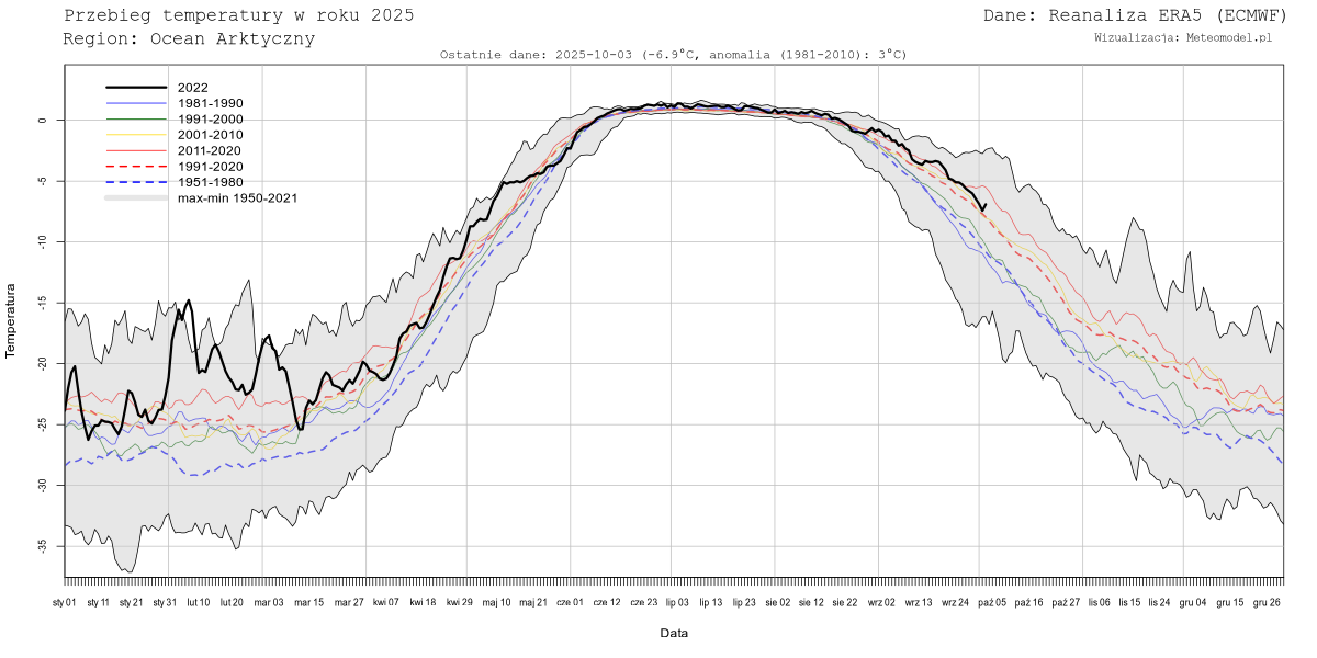 Obecnie nie dla wszystkich z ww. mórz generowane są dane. Należy też mieć na uwadze, że tzw. "Średnia Arktyki" oznacza temperaturę uśrednioną nad morzami arktycznymi z wyłączeniem Morza Grenlandzkiego, Norweskiego, Cieśniny Davisa, Cieśniny Hudsona, Zatoki Hudsona i dodatkowo przycięta do równoleżnika 69N.