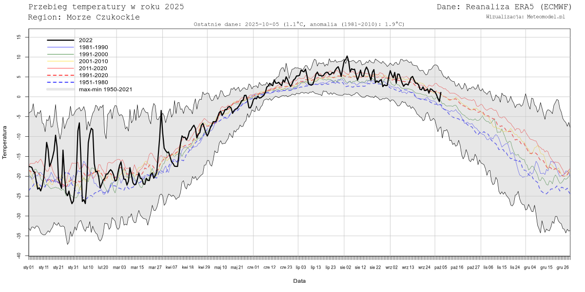 Obecnie nie dla wszystkich z ww. mórz generowane są dane. Należy też mieć na uwadze, że tzw. "Średnia Arktyki" oznacza temperaturę uśrednioną nad morzami arktycznymi z wyłączeniem Morza Grenlandzkiego, Norweskiego, Cieśniny Davisa, Cieśniny Hudsona, Zatoki Hudsona i dodatkowo przycięta do równoleżnika 69N.