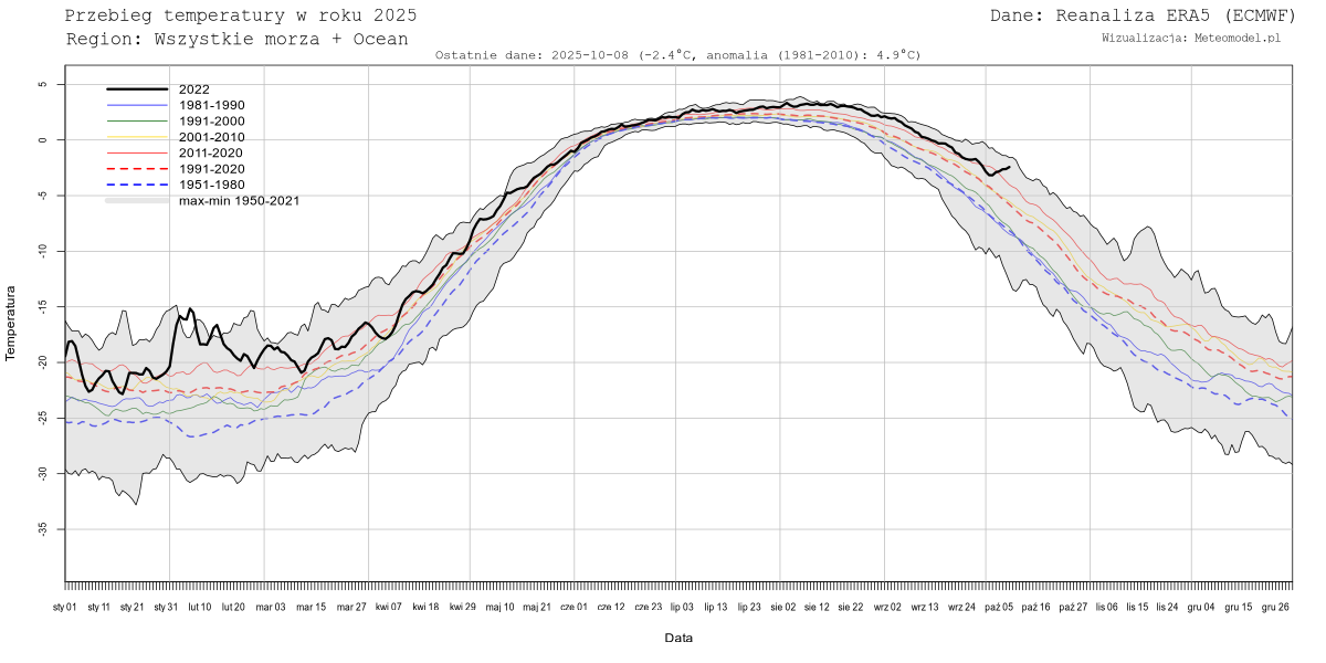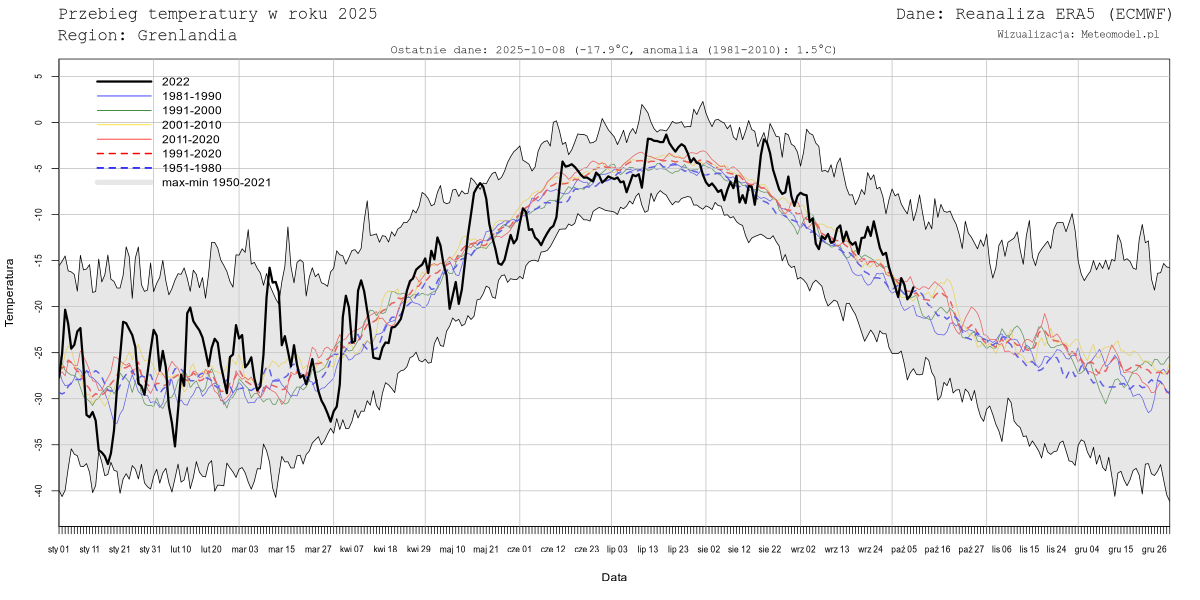 Dane dotyczące temperatur pochodzą z reanalizy ERA5 (ECMWF) pobranych z serwisu Copernicus. W przeciwieństwie do poprzedniej reanalizy, ERA-Interim, reanaliza ERA5 jest aktualizowana niemal w czasie rzeczywistym (zwykle najświeższe dane pochodzą sprzed pięciu dni). W chwili obecnej reanaliza ERA5 obejmuje lata 1979-2020, jednakże jeszcze w tym roku ma być rozszerzona o lata 1950-1978. Dane zostaną wówczas zaktualizowane.