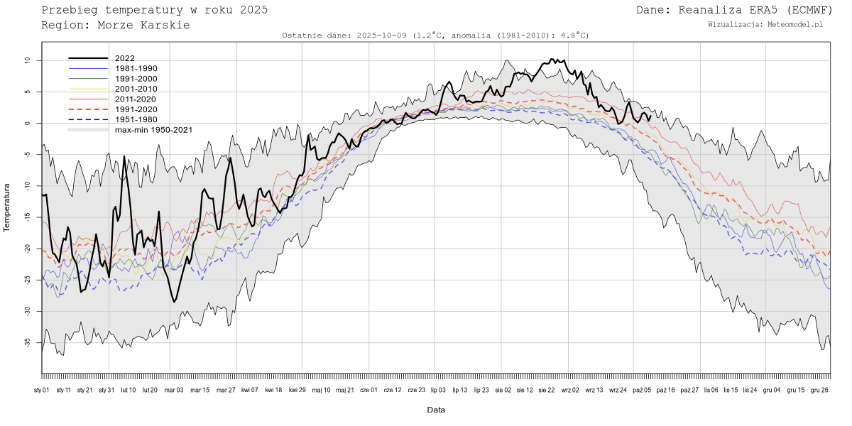 Obecnie nie dla wszystkich z ww. mórz generowane są dane. Należy też mieć na uwadze, że tzw. "Średnia Arktyki" oznacza temperaturę uśrednioną nad morzami arktycznymi z wyłączeniem Morza Grenlandzkiego, Norweskiego, Cieśniny Davisa, Cieśniny Hudsona, Zatoki Hudsona i dodatkowo przycięta do równoleżnika 69N.