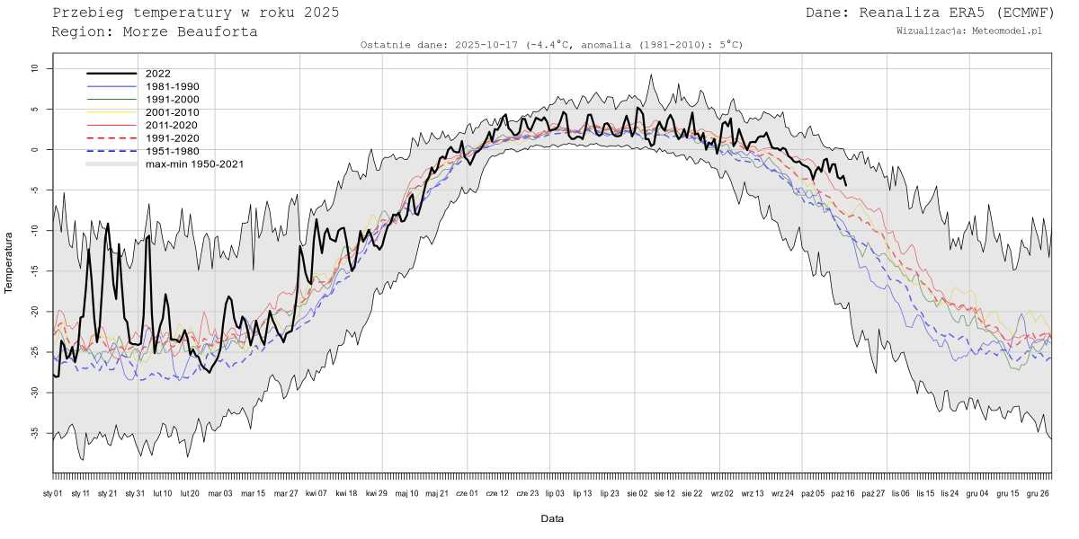 Obecnie nie dla wszystkich z ww. mórz generowane są dane. Należy też mieć na uwadze, że tzw. "Średnia Arktyki" oznacza temperaturę uśrednioną nad morzami arktycznymi z wyłączeniem Morza Grenlandzkiego, Norweskiego, Cieśniny Davisa, Cieśniny Hudsona, Zatoki Hudsona i dodatkowo przycięta do równoleżnika 69N.