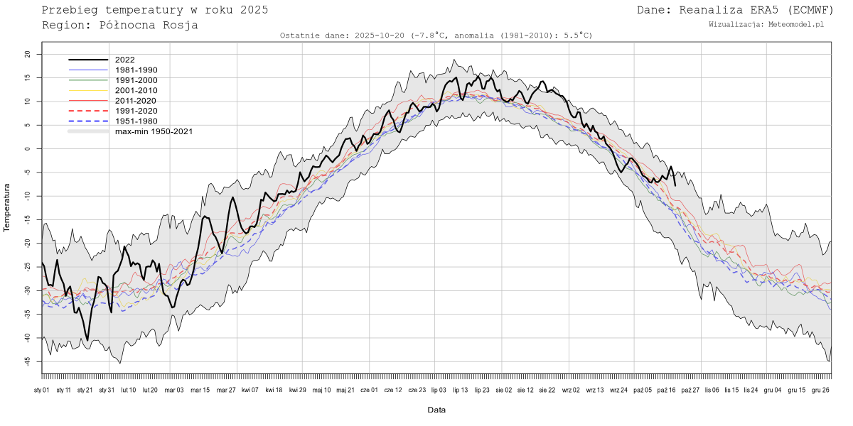 Dane dotyczące temperatur pochodzą z reanalizy ERA5 (ECMWF) pobranych z serwisu Copernicus. W przeciwieństwie do poprzedniej reanalizy, ERA-Interim, reanaliza ERA5 jest aktualizowana niemal w czasie rzeczywistym (zwykle najświeższe dane pochodzą sprzed pięciu dni). W chwili obecnej reanaliza ERA5 obejmuje lata 1979-2020, jednakże jeszcze w tym roku ma być rozszerzona o lata 1950-1978. Dane zostaną wówczas zaktualizowane.