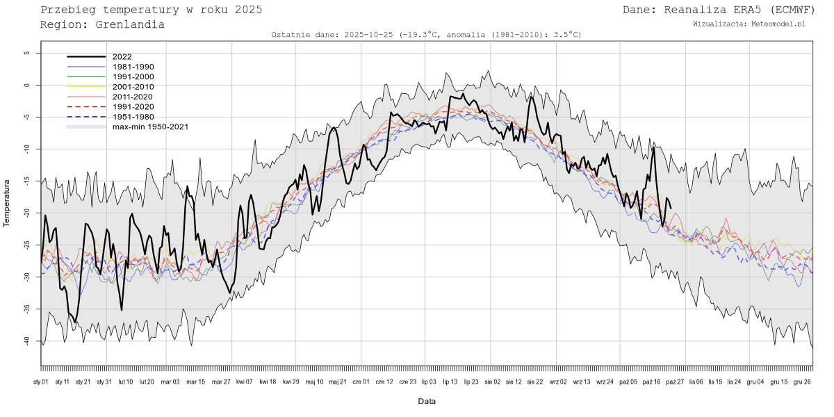 Dane dotyczące temperatur pochodzą z reanalizy ERA5 (ECMWF) pobranych z serwisu Copernicus. W przeciwieństwie do poprzedniej reanalizy, ERA-Interim, reanaliza ERA5 jest aktualizowana niemal w czasie rzeczywistym (zwykle najświeższe dane pochodzą sprzed pięciu dni). W chwili obecnej reanaliza ERA5 obejmuje lata 1979-2020, jednakże jeszcze w tym roku ma być rozszerzona o lata 1950-1978. Dane zostaną wówczas zaktualizowane.