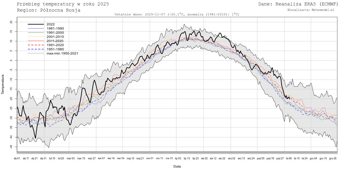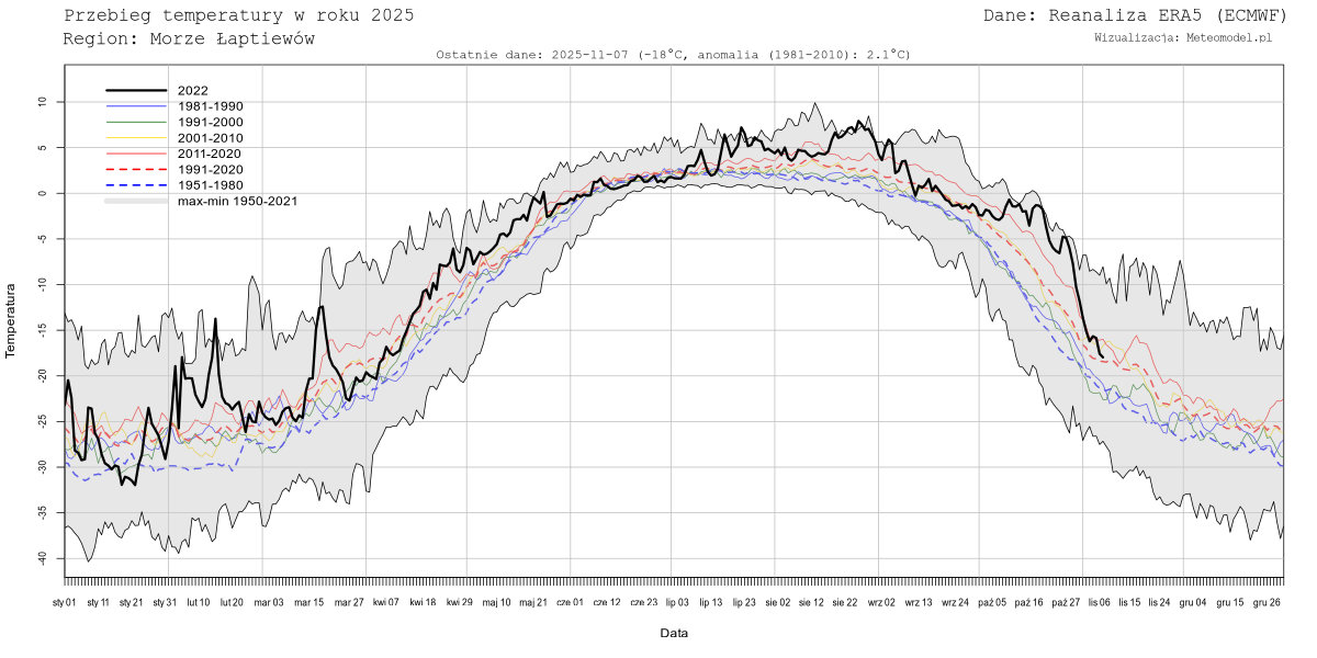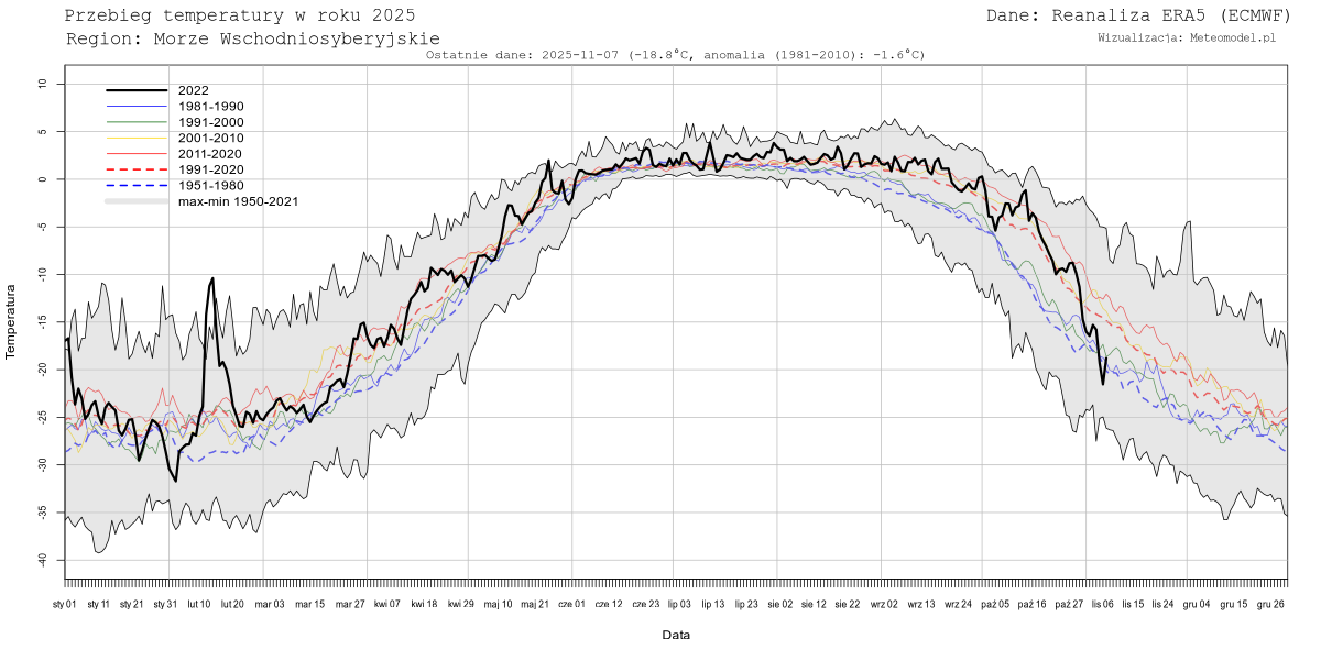 Dane dotyczące temperatur pochodzą z reanalizy ERA5 (ECMWF) pobranych z serwisu Copernicus. W przeciwieństwie do poprzedniej reanalizy, ERA-Interim, reanaliza ERA5 jest aktualizowana niemal w czasie rzeczywistym (zwykle najświeższe dane pochodzą sprzed pięciu dni). W chwili obecnej reanaliza ERA5 obejmuje lata 1979-2020, jednakże jeszcze w tym roku ma być rozszerzona o lata 1950-1978. Dane zostaną wówczas zaktualizowane.