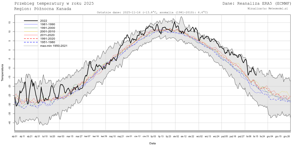 Dane dotyczące temperatur pochodzą z reanalizy ERA5 (ECMWF) pobranych z serwisu Copernicus. W przeciwieństwie do poprzedniej reanalizy, ERA-Interim, reanaliza ERA5 jest aktualizowana niemal w czasie rzeczywistym (zwykle najświeższe dane pochodzą sprzed pięciu dni). W chwili obecnej reanaliza ERA5 obejmuje lata 1979-2020, jednakże jeszcze w tym roku ma być rozszerzona o lata 1950-1978. Dane zostaną wówczas zaktualizowane.