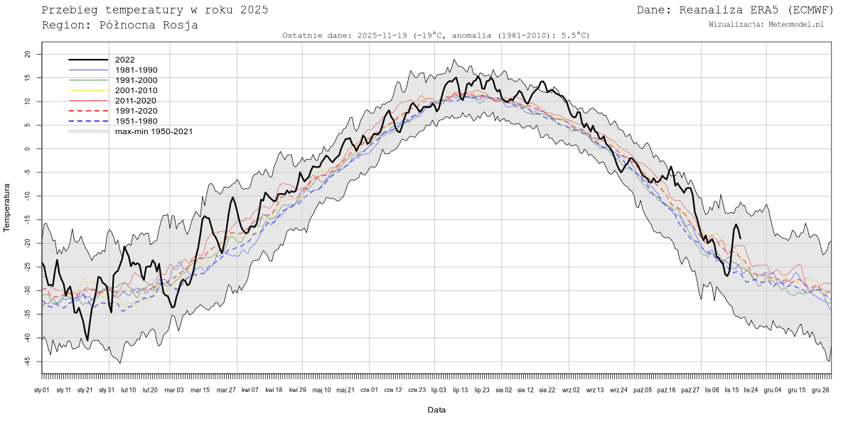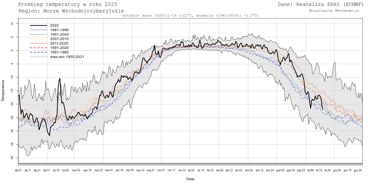 Dane dotyczące temperatur pochodzą z reanalizy ERA5 (ECMWF) pobranych z serwisu Copernicus. W przeciwieństwie do poprzedniej reanalizy, ERA-Interim, reanaliza ERA5 jest aktualizowana niemal w czasie rzeczywistym (zwykle najświeższe dane pochodzą sprzed pięciu dni). W chwili obecnej reanaliza ERA5 obejmuje lata 1979-2020, jednakże jeszcze w tym roku ma być rozszerzona o lata 1950-1978. Dane zostaną wówczas zaktualizowane.