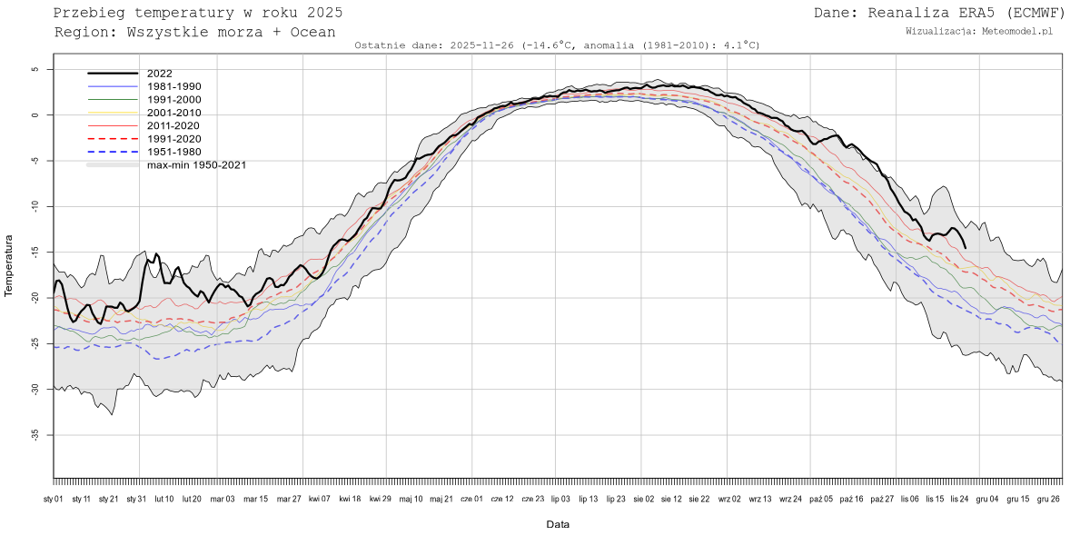 Obecnie nie dla wszystkich z ww. mórz generowane są dane. Należy też mieć na uwadze, że tzw. "Średnia Arktyki" oznacza temperaturę uśrednioną nad morzami arktycznymi z wyłączeniem Morza Grenlandzkiego, Norweskiego, Cieśniny Davisa, Cieśniny Hudsona, Zatoki Hudsona i dodatkowo przycięta do równoleżnika 69N.