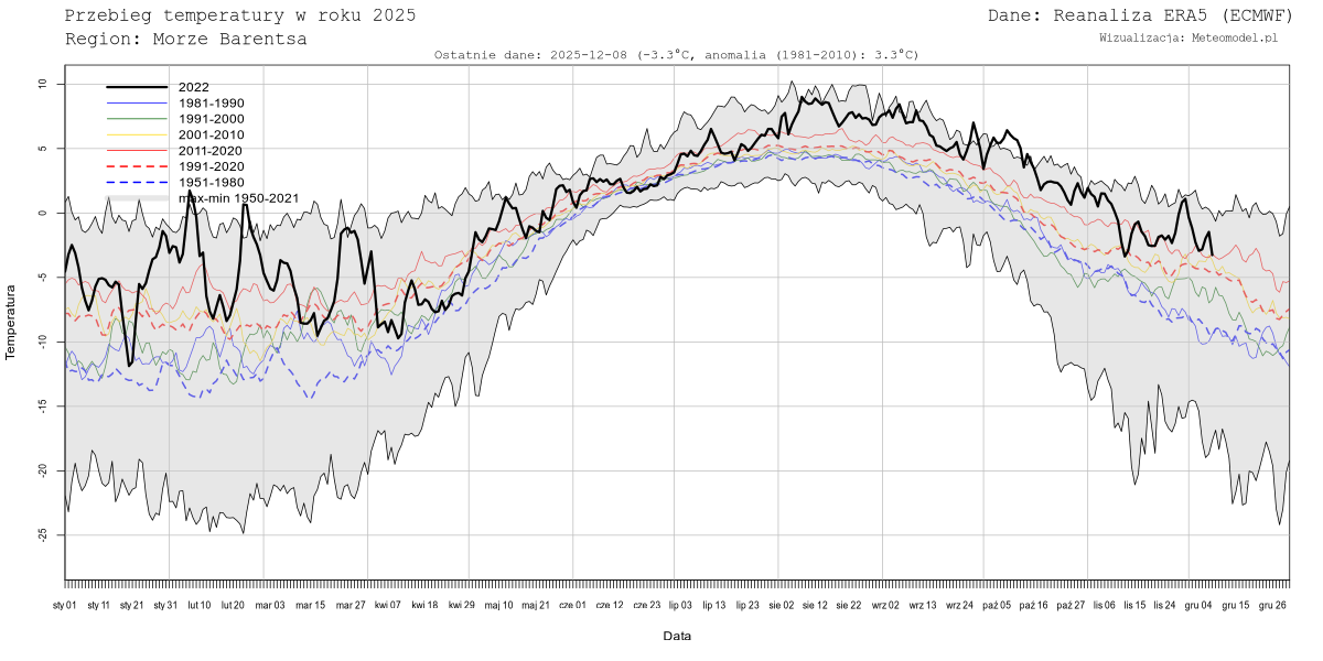 Obecnie nie dla wszystkich z ww. mórz generowane są dane. Należy też mieć na uwadze, że tzw. "Średnia Arktyki" oznacza temperaturę uśrednioną nad morzami arktycznymi z wyłączeniem Morza Grenlandzkiego, Norweskiego, Cieśniny Davisa, Cieśniny Hudsona, Zatoki Hudsona i dodatkowo przycięta do równoleżnika 69N.
