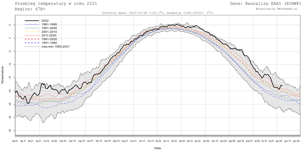 Dane dotyczące temperatur pochodzą z reanalizy ERA5 (ECMWF) pobranych z serwisu Copernicus. W przeciwieństwie do poprzedniej reanalizy, ERA-Interim, reanaliza ERA5 jest aktualizowana niemal w czasie rzeczywistym (zwykle najświeższe dane pochodzą sprzed pięciu dni). W chwili obecnej reanaliza ERA5 obejmuje lata 1979-2020, jednakże jeszcze w tym roku ma być rozszerzona o lata 1950-1978. Dane zostaną wówczas zaktualizowane.