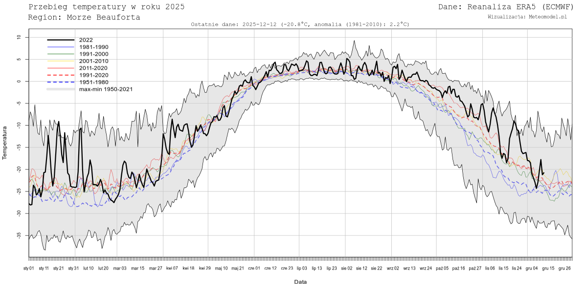 Obecnie nie dla wszystkich z ww. mórz generowane są dane. Należy też mieć na uwadze, że tzw. "Średnia Arktyki" oznacza temperaturę uśrednioną nad morzami arktycznymi z wyłączeniem Morza Grenlandzkiego, Norweskiego, Cieśniny Davisa, Cieśniny Hudsona, Zatoki Hudsona i dodatkowo przycięta do równoleżnika 69N.