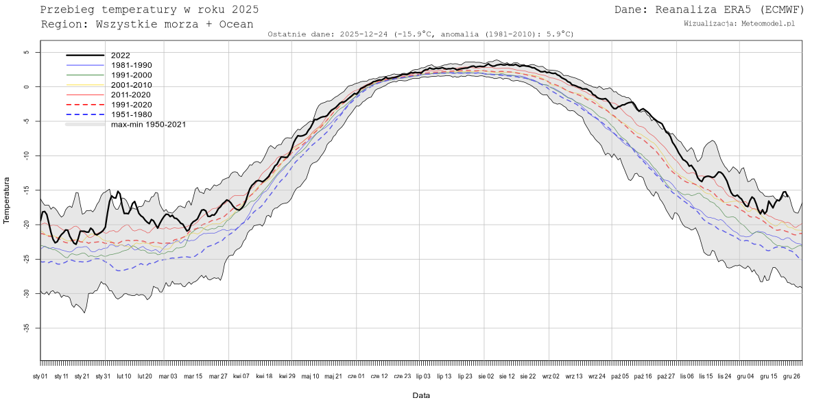 Obecnie nie dla wszystkich z ww. mórz generowane są dane. Należy też mieć na uwadze, że tzw. "Średnia Arktyki" oznacza temperaturę uśrednioną nad morzami arktycznymi z wyłączeniem Morza Grenlandzkiego, Norweskiego, Cieśniny Davisa, Cieśniny Hudsona, Zatoki Hudsona i dodatkowo przycięta do równoleżnika 69N.