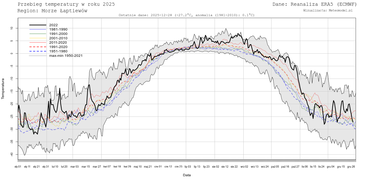 Obecnie nie dla wszystkich z ww. mórz generowane są dane. Należy też mieć na uwadze, że tzw. "Średnia Arktyki" oznacza temperaturę uśrednioną nad morzami arktycznymi z wyłączeniem Morza Grenlandzkiego, Norweskiego, Cieśniny Davisa, Cieśniny Hudsona, Zatoki Hudsona i dodatkowo przycięta do równoleżnika 69N.