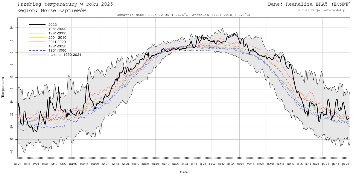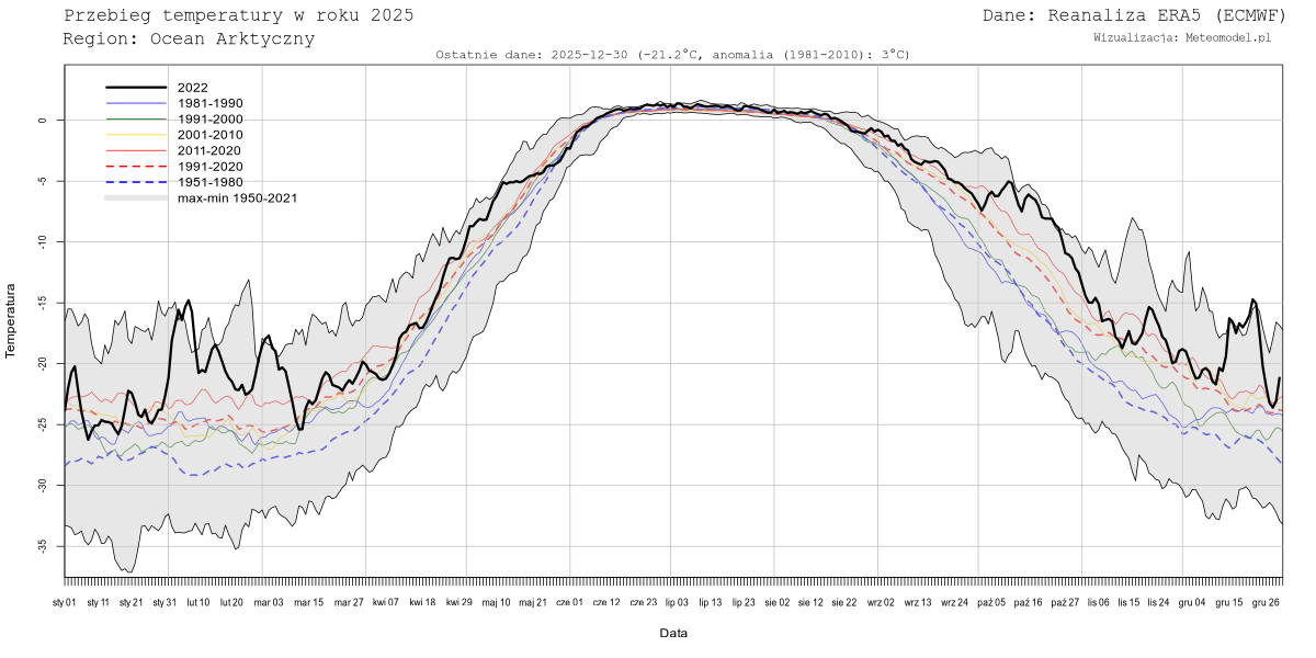 Dane dotyczące temperatur pochodzą z reanalizy ERA5 (ECMWF) pobranych z serwisu Copernicus. W przeciwieństwie do poprzedniej reanalizy, ERA-Interim, reanaliza ERA5 jest aktualizowana niemal w czasie rzeczywistym (zwykle najświeższe dane pochodzą sprzed pięciu dni). W chwili obecnej reanaliza ERA5 obejmuje lata 1979-2020, jednakże jeszcze w tym roku ma być rozszerzona o lata 1950-1978. Dane zostaną wówczas zaktualizowane.