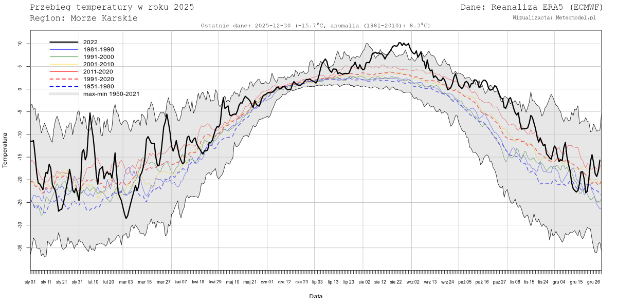 Obecnie nie dla wszystkich z ww. mórz generowane są dane. Należy też mieć na uwadze, że tzw. "Średnia Arktyki" oznacza temperaturę uśrednioną nad morzami arktycznymi z wyłączeniem Morza Grenlandzkiego, Norweskiego, Cieśniny Davisa, Cieśniny Hudsona, Zatoki Hudsona i dodatkowo przycięta do równoleżnika 69N.
