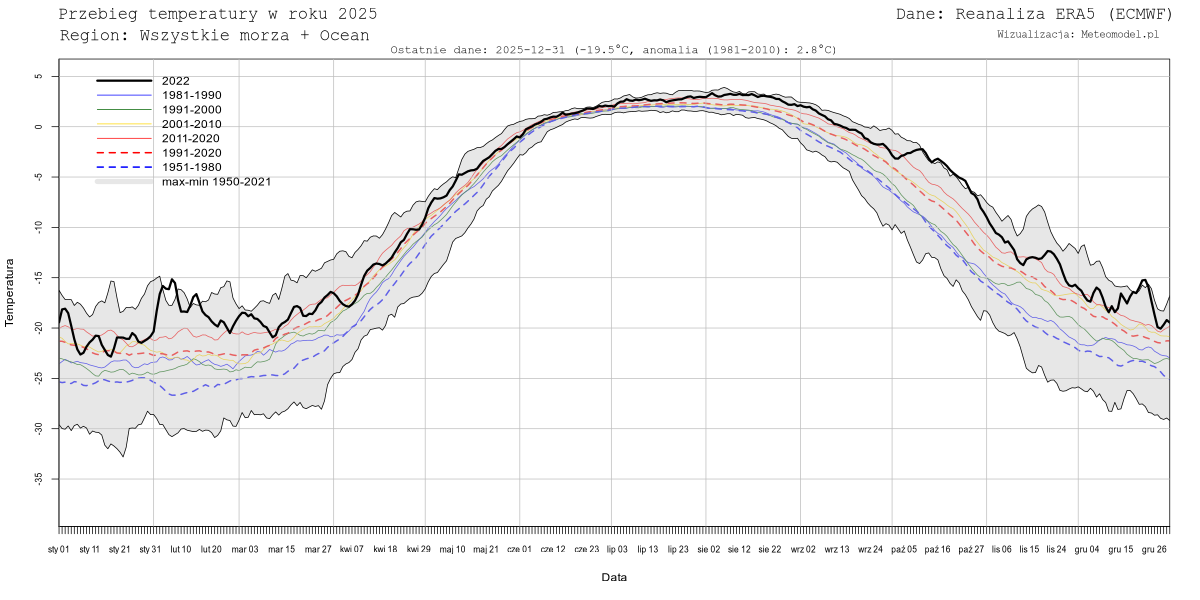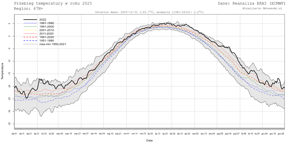 Dane dotyczące temperatur pochodzą z reanalizy ERA5 (ECMWF) pobranych z serwisu Copernicus. W przeciwieństwie do poprzedniej reanalizy, ERA-Interim, reanaliza ERA5 jest aktualizowana niemal w czasie rzeczywistym (zwykle najświeższe dane pochodzą sprzed pięciu dni). W chwili obecnej reanaliza ERA5 obejmuje lata 1979-2020, jednakże jeszcze w tym roku ma być rozszerzona o lata 1950-1978. Dane zostaną wówczas zaktualizowane.
