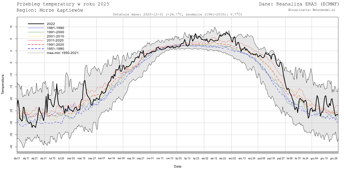 Obecnie nie dla wszystkich z ww. mórz generowane są dane. Należy też mieć na uwadze, że tzw. "Średnia Arktyki" oznacza temperaturę uśrednioną nad morzami arktycznymi z wyłączeniem Morza Grenlandzkiego, Norweskiego, Cieśniny Davisa, Cieśniny Hudsona, Zatoki Hudsona i dodatkowo przycięta do równoleżnika 69N.