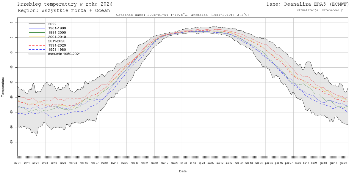 Dane dotyczące temperatur pochodzą z reanalizy ERA5 (ECMWF) pobranych z serwisu Copernicus. W przeciwieństwie do poprzedniej reanalizy, ERA-Interim, reanaliza ERA5 jest aktualizowana niemal w czasie rzeczywistym (zwykle najświeższe dane pochodzą sprzed pięciu dni). W chwili obecnej reanaliza ERA5 obejmuje lata 1979-2020, jednakże jeszcze w tym roku ma być rozszerzona o lata 1950-1978. Dane zostaną wówczas zaktualizowane.