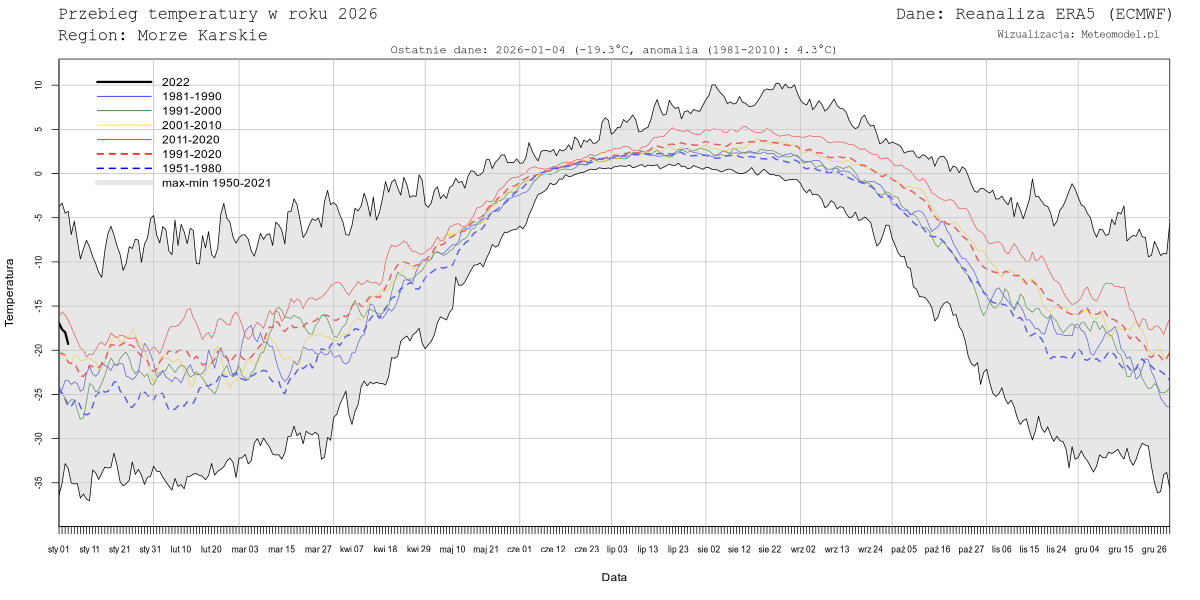 Obecnie nie dla wszystkich z ww. mórz generowane są dane. Należy też mieć na uwadze, że tzw. "Średnia Arktyki" oznacza temperaturę uśrednioną nad morzami arktycznymi z wyłączeniem Morza Grenlandzkiego, Norweskiego, Cieśniny Davisa, Cieśniny Hudsona, Zatoki Hudsona i dodatkowo przycięta do równoleżnika 69N.