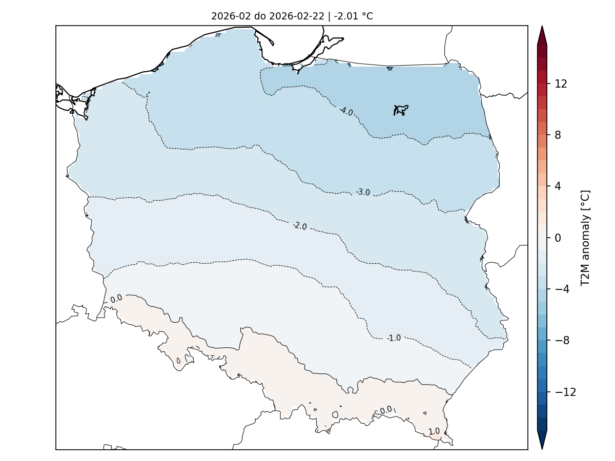Średnia anomalia temperatury powietrza na 2 metrach