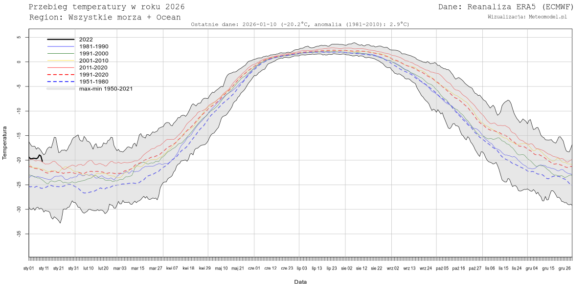 Dane dotyczące temperatur pochodzą z reanalizy ERA5 (ECMWF) pobranych z serwisu Copernicus. W przeciwieństwie do poprzedniej reanalizy, ERA-Interim, reanaliza ERA5 jest aktualizowana niemal w czasie rzeczywistym (zwykle najświeższe dane pochodzą sprzed pięciu dni). W chwili obecnej reanaliza ERA5 obejmuje lata 1979-2020, jednakże jeszcze w tym roku ma być rozszerzona o lata 1950-1978. Dane zostaną wówczas zaktualizowane.