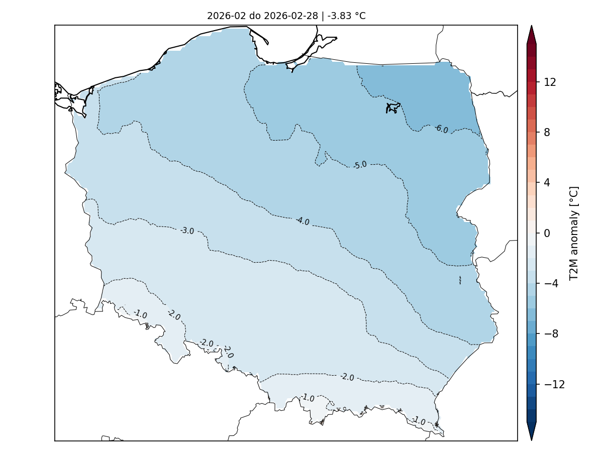 Średnia dobowa anomalia temperatury powietrza na 2 metrach