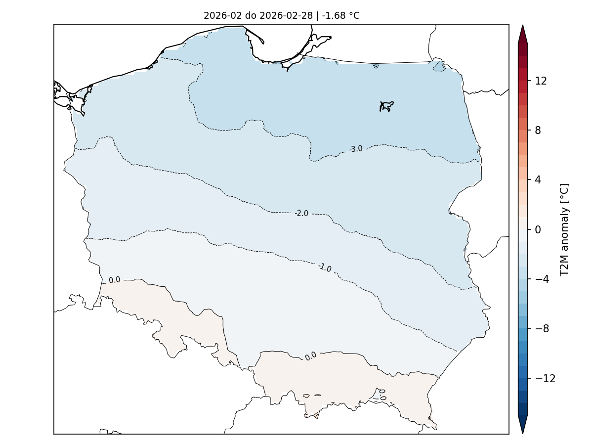 Średnia dobowa anomalia temperatury powietrza na 2 metrach