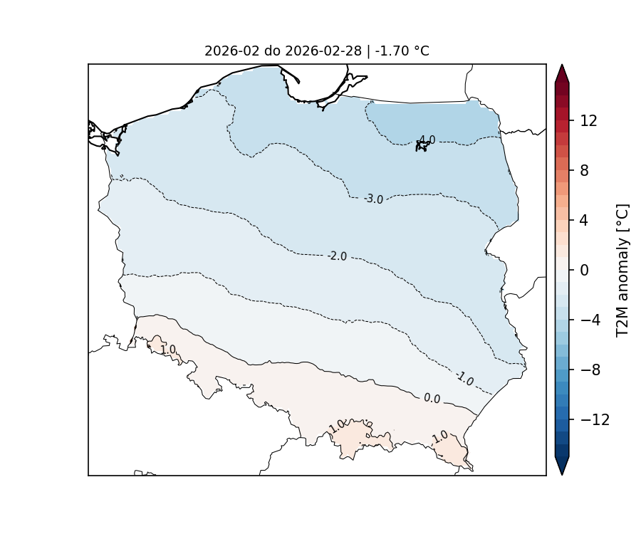 Średnia anomalia temperatury powietrza na 2 metrach