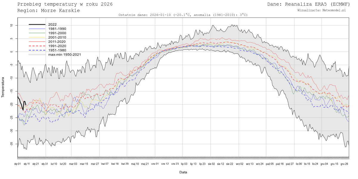 Obecnie nie dla wszystkich z ww. mórz generowane są dane. Należy też mieć na uwadze, że tzw. "Średnia Arktyki" oznacza temperaturę uśrednioną nad morzami arktycznymi z wyłączeniem Morza Grenlandzkiego, Norweskiego, Cieśniny Davisa, Cieśniny Hudsona, Zatoki Hudsona i dodatkowo przycięta do równoleżnika 69N.