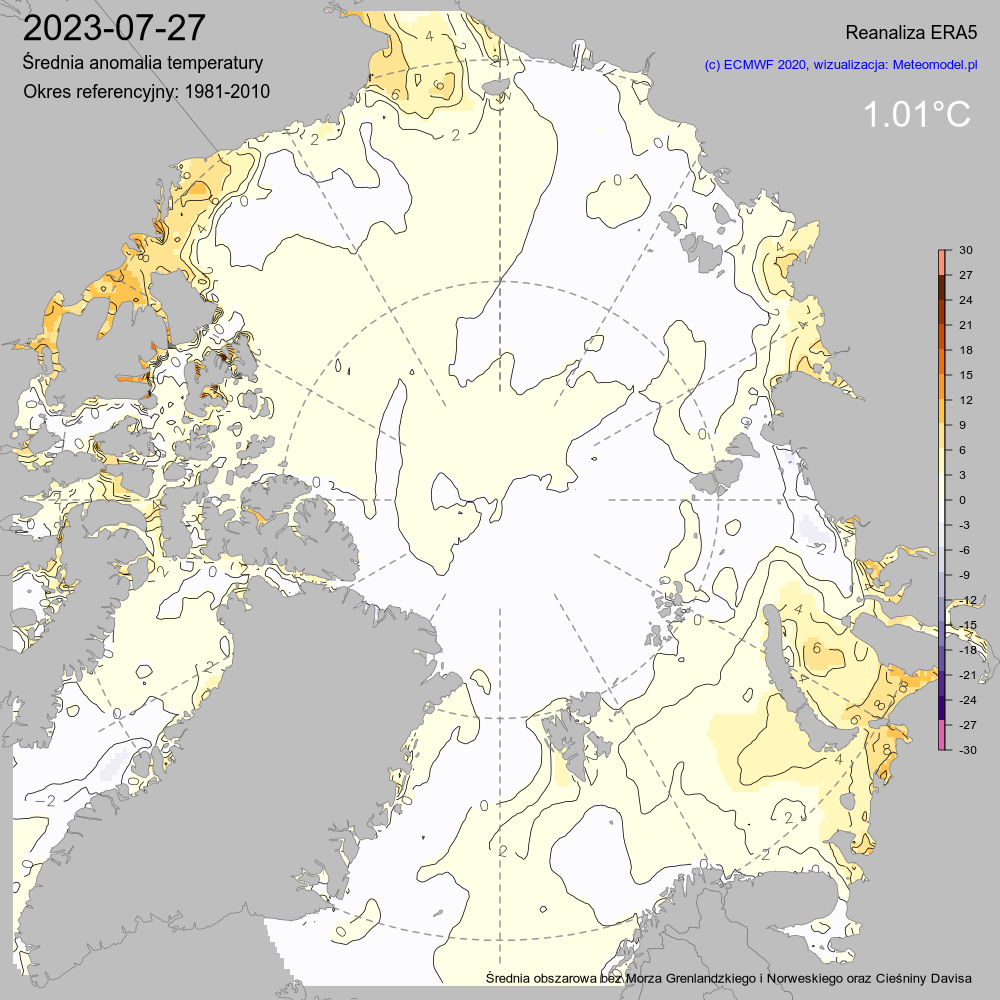 Obecnie nie dla wszystkich z ww. mórz generowane są dane. Należy też mieć na uwadze, że tzw. "Średnia Arktyki" oznacza temperaturę uśrednioną nad morzami arktycznymi z wyłączeniem Morza Grenlandzkiego, Norweskiego, Cieśniny Davisa, Cieśniny Hudsona, Zatoki Hudsona i dodatkowo przycięta do równoleżnika 69N.