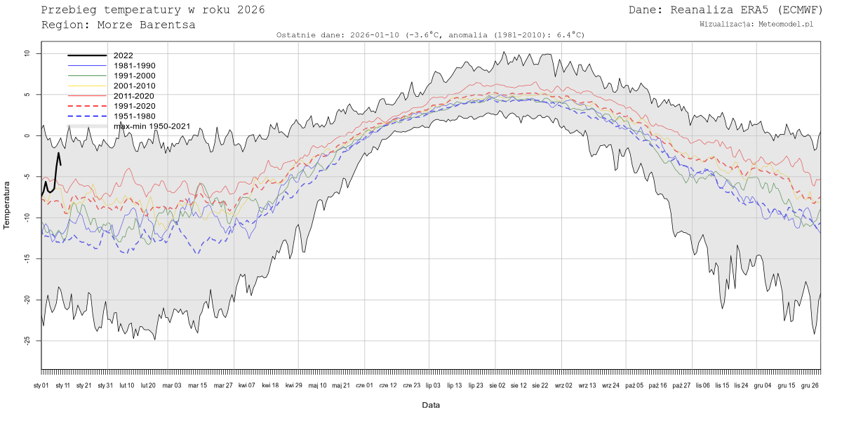 Obecnie nie dla wszystkich z ww. mórz generowane są dane. Należy też mieć na uwadze, że tzw. "Średnia Arktyki" oznacza temperaturę uśrednioną nad morzami arktycznymi z wyłączeniem Morza Grenlandzkiego, Norweskiego, Cieśniny Davisa, Cieśniny Hudsona, Zatoki Hudsona i dodatkowo przycięta do równoleżnika 69N.