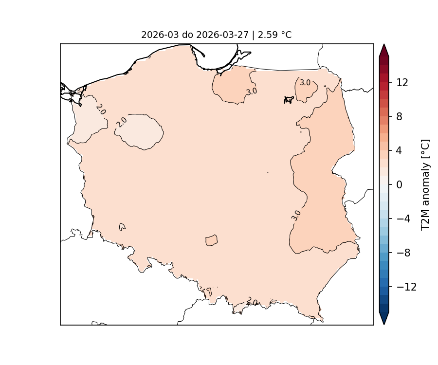 Średnia dobowa anomalia temperatury powietrza na 2 metrach