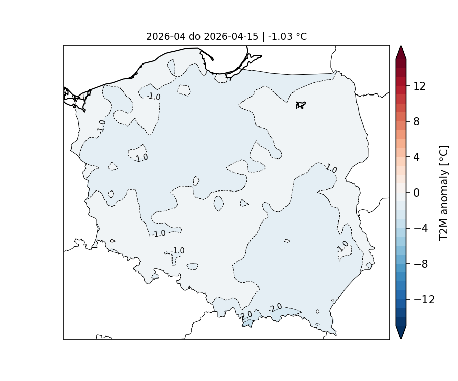 Średnia anomalia temperatury powietrza na 2 metrach