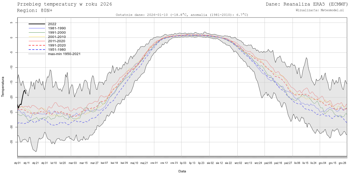 Dane dotyczące temperatur pochodzą z reanalizy ERA5 (ECMWF) pobranych z serwisu Copernicus. W przeciwieństwie do poprzedniej reanalizy, ERA-Interim, reanaliza ERA5 jest aktualizowana niemal w czasie rzeczywistym (zwykle najświeższe dane pochodzą sprzed pięciu dni). W chwili obecnej reanaliza ERA5 obejmuje lata 1979-2020, jednakże jeszcze w tym roku ma być rozszerzona o lata 1950-1978. Dane zostaną wówczas zaktualizowane.