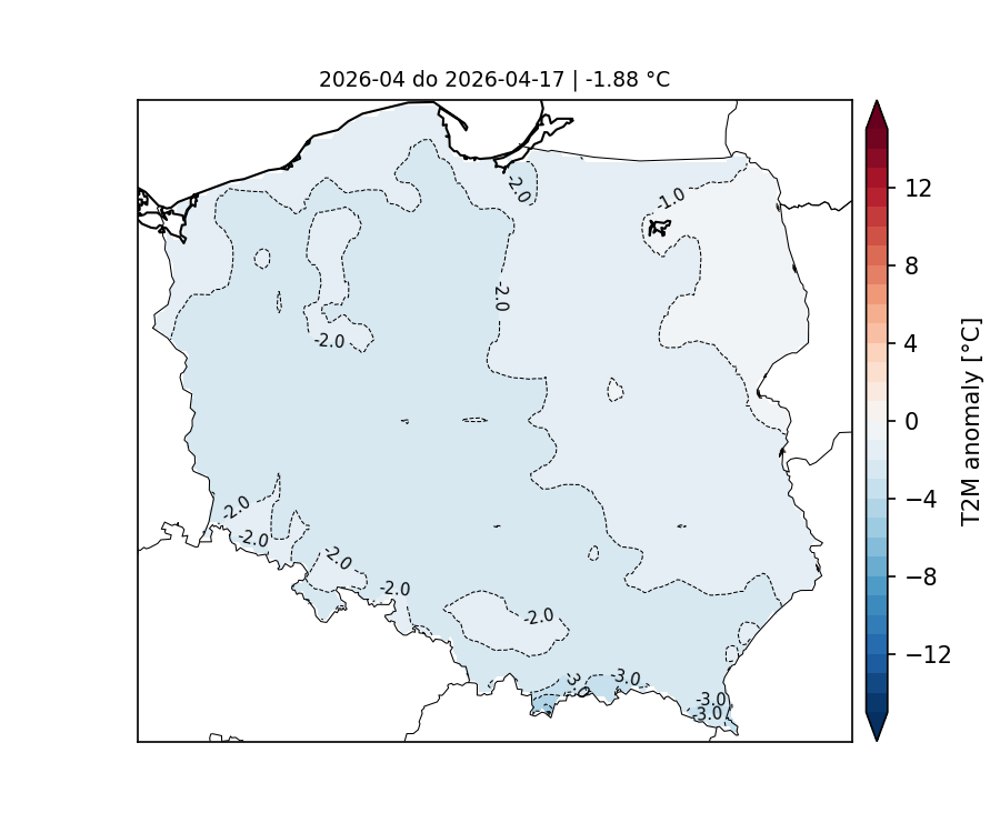 Średnia dobowa anomalia temperatury powietrza na 2 metrach