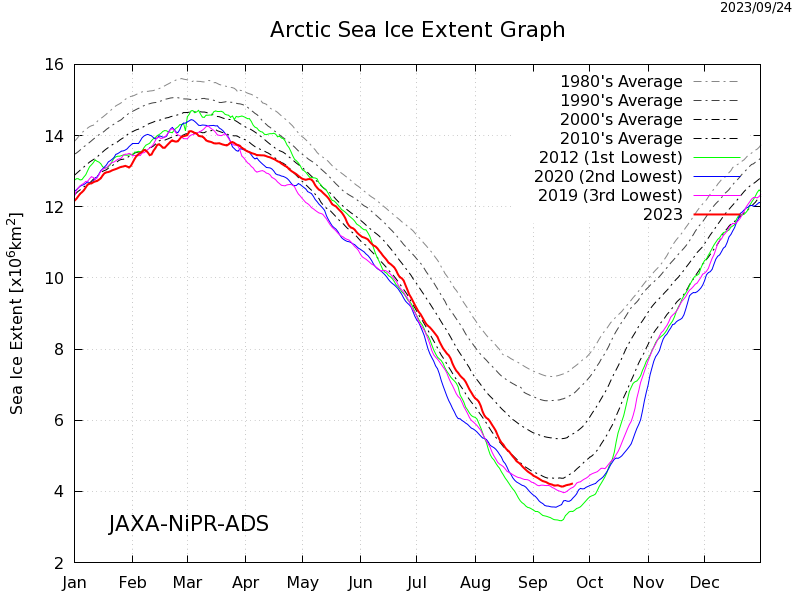 JAXA - zasięg (extent) pokrywy lodowej Arktyki