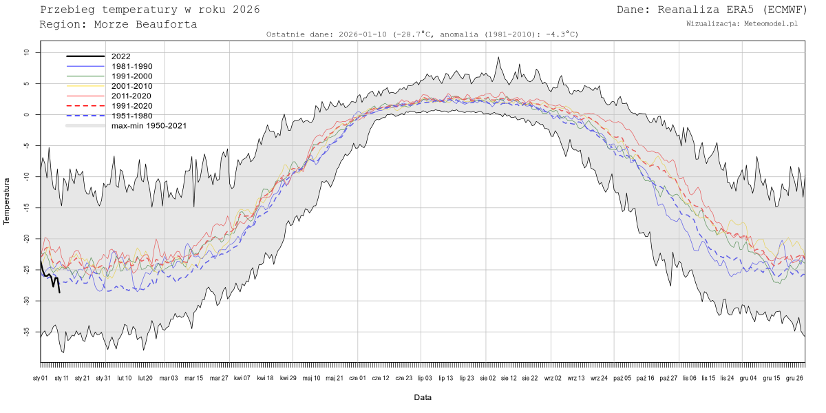 Obecnie nie dla wszystkich z ww. mórz generowane są dane. Należy też mieć na uwadze, że tzw. "Średnia Arktyki" oznacza temperaturę uśrednioną nad morzami arktycznymi z wyłączeniem Morza Grenlandzkiego, Norweskiego, Cieśniny Davisa, Cieśniny Hudsona, Zatoki Hudsona i dodatkowo przycięta do równoleżnika 69N.