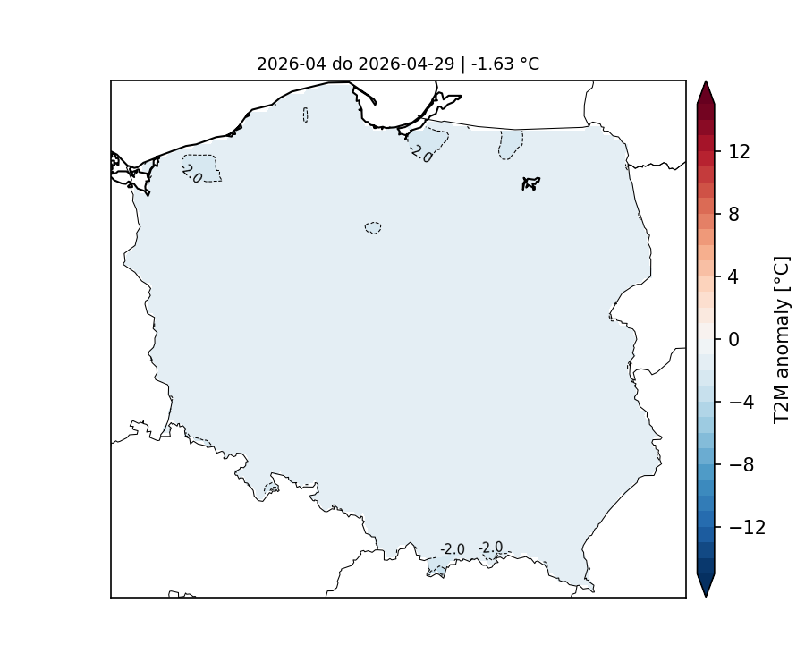 Średnia anomalia temperatury powietrza na 2 metrach